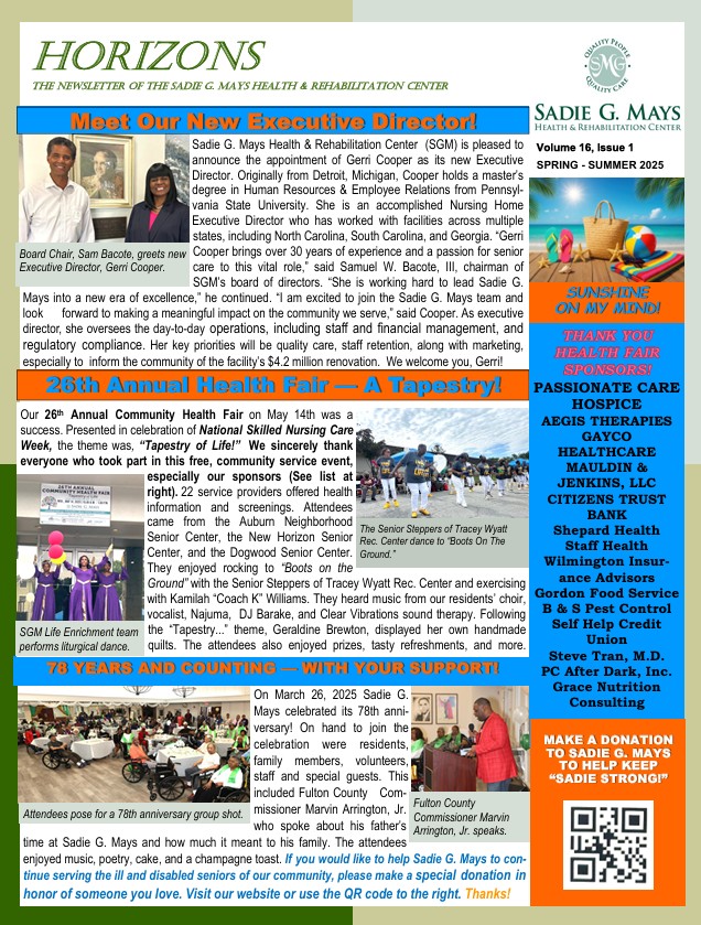 Through a donation from one of our generous supporters, we will begin renovating the lobby and dining room/living room area soon. It has been a busy time at Sadie G. Mays. We are most grateful for your continued supp